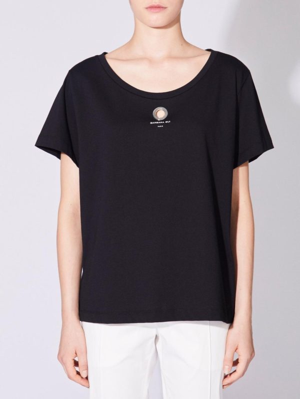 Barbara Bui Black Cotton Jersey Short Sleeve T-shirt | Women Tee-Shirts