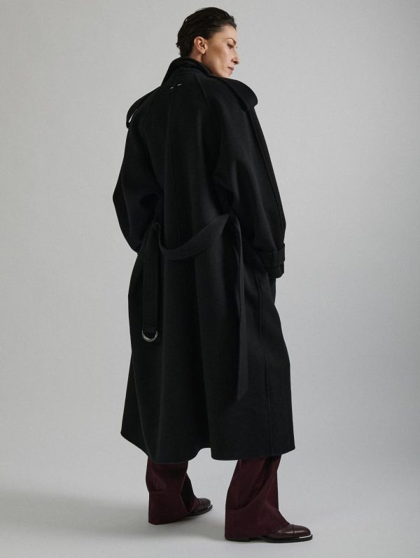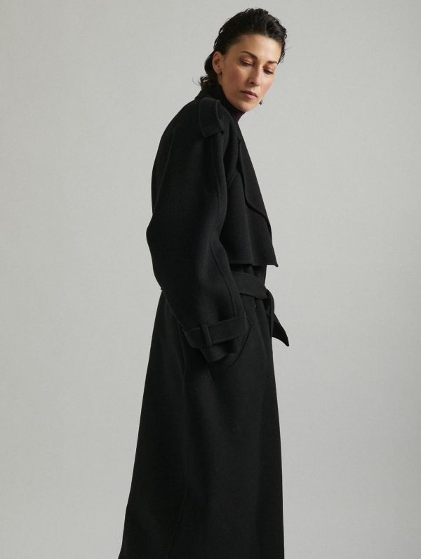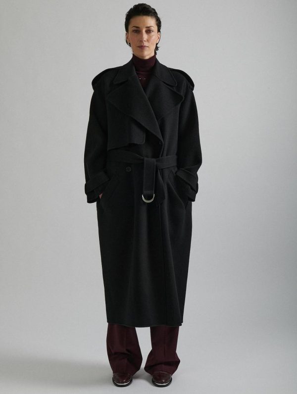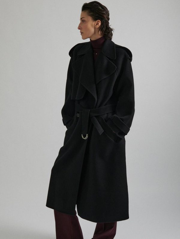 Barbara Bui Black Double-faced Wool Belted Coat | Women Outerwwear