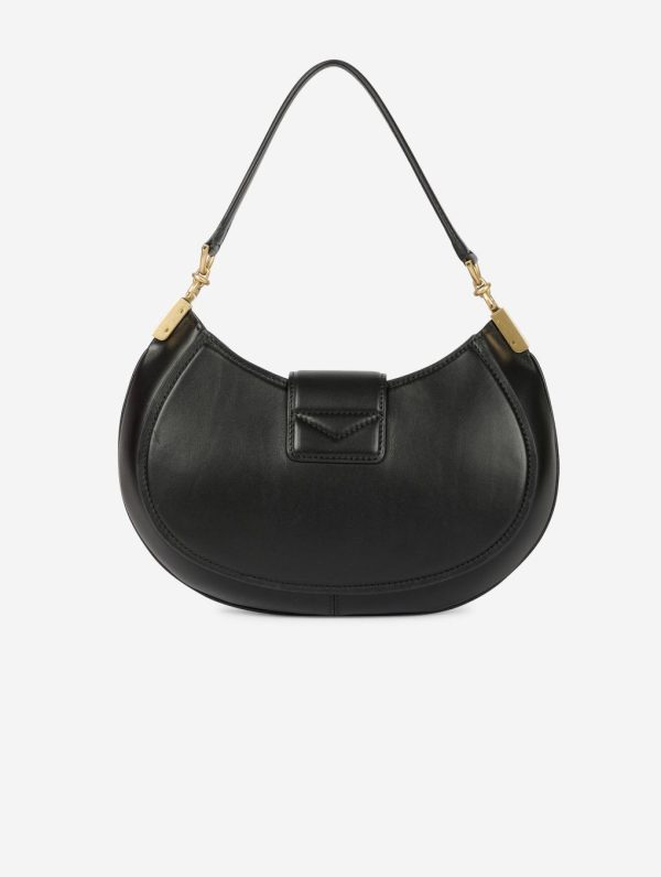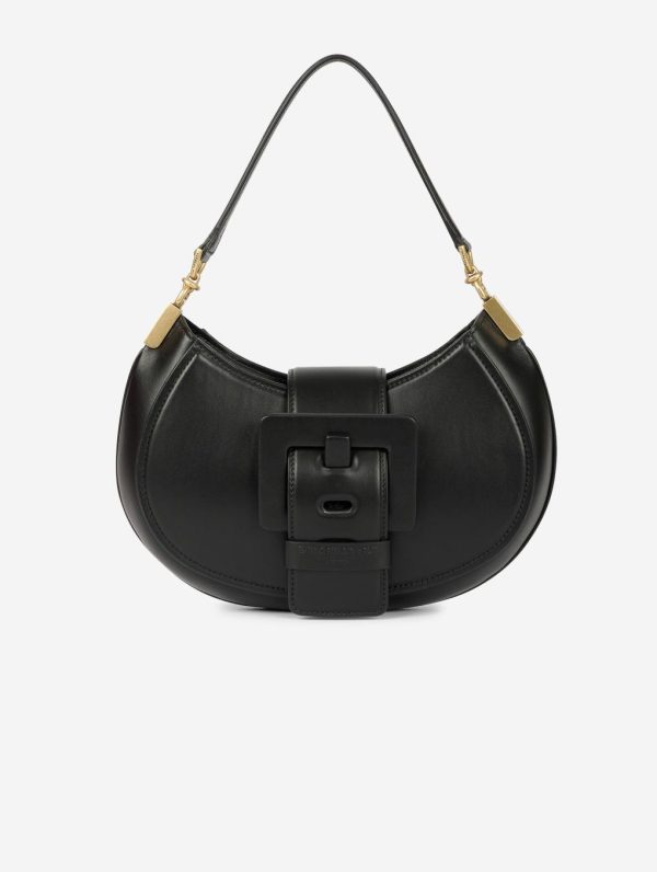 KISS ME bag in smooth black calfskin. Features a top zip, foldover magnetic fastening flap and the signature large leather buckle from our “ME” line of bags. Can be carried by hand or over the shoulder. Inside patch pocket. Height: 20 cm / Length: 28 cm / Depth: 8 cm.Height: 20 cm
