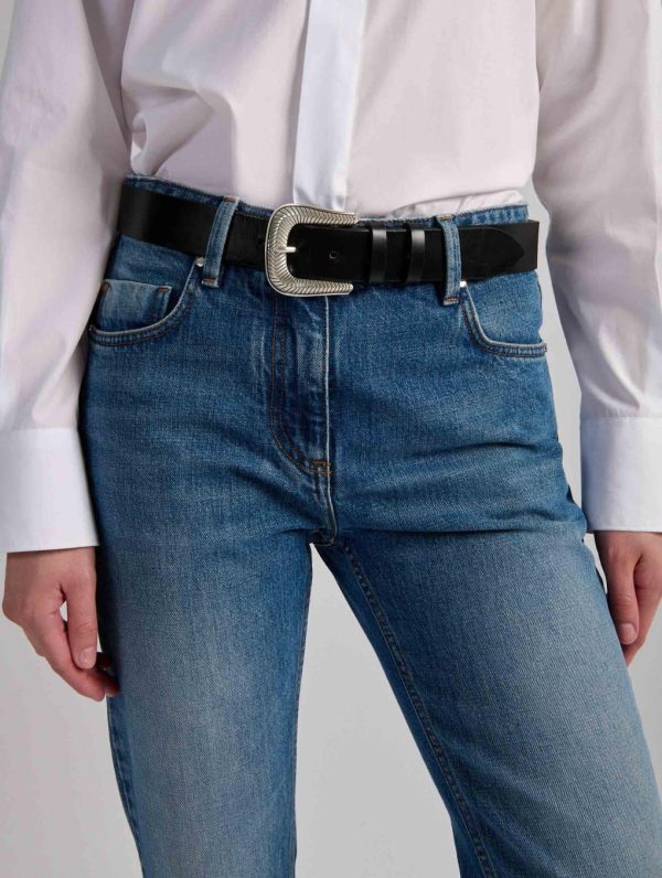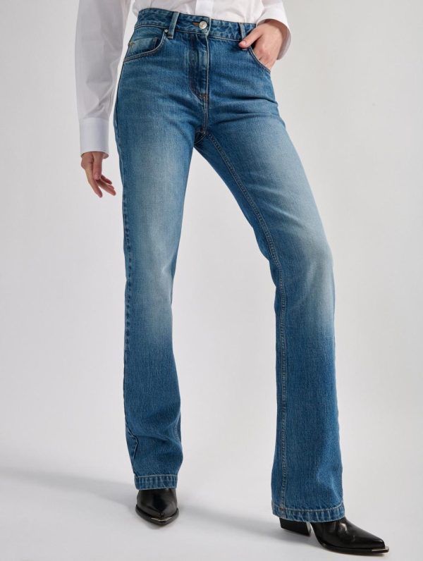 Impeccably straight-cut, these women’s jeans are a sure bet for everyday wear. Its perfect wash, neither too light nor too raw, gives it elegance and authenticity, while allowing it to be paired with multiple pieces this season. Barbara Bui’s tobacco-colored topstitching is complemented by a black leather label and a gold-plated metal tab BB on the ticket pocket, for a rock-solid yet sophisticated touch.
