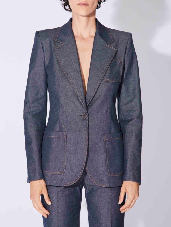 Barbara Bui Blue Washed Denim Suit Jacket | Women Jackets