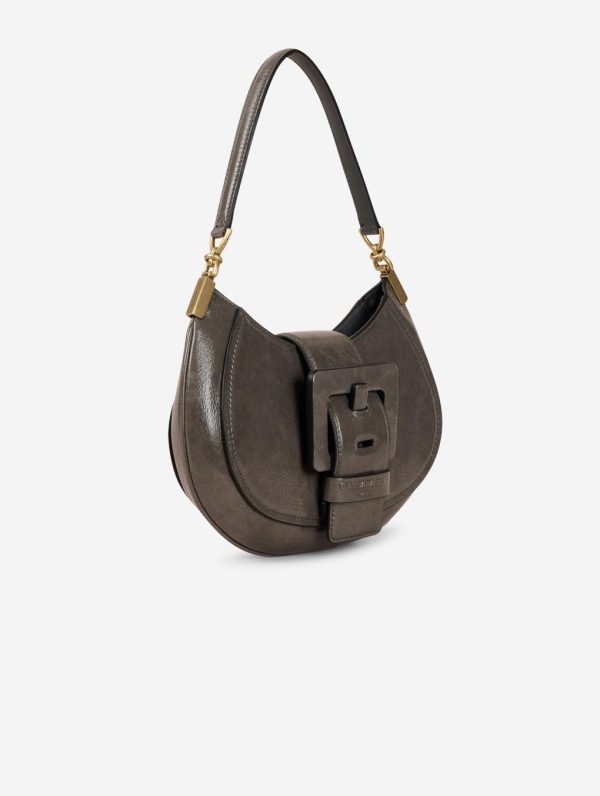 Elevate your style with the sophisticated KISS ME bag crafted in stunning grey patent leather. This exquisite piece features a secure top zip closure with a stylish foldover magnetic fastening flap, showcasing the signature oversized leather buckle from our iconic “ME” collection. Designed for versatile wear, it can be elegantly carried by hand or comfortably worn over the shoulder for hands-free convenience. Includes a practical inside patch pocket for organized storage. Height: 20 cm / Length: 28 cm / Depth: 8 cm.Height : 20 cm – Longueur : 28 cm – Depth : 8 cm.100% Calf leather