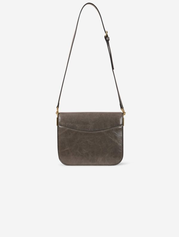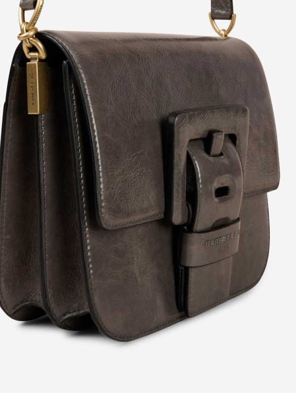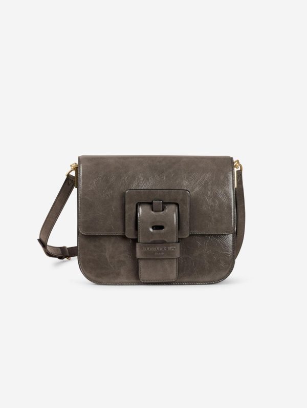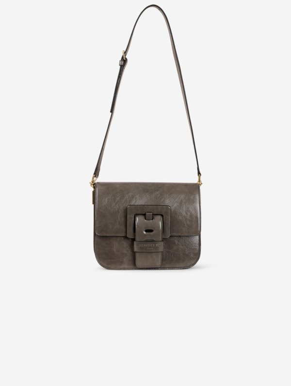 TOUCH ME bag in grey naplak patent leather. Magnetic fastening flap and the signature large leather buckle from our “ME” line of bags. Adjustable shoulder strap with buckle for crossover or hand-carrying. Front and back pocket, double inside compartment with pockets. Height: 19 cm / Length: 22.5 cm / Depth: 7.5 cm.Height : 19 cm – Longueur : 22,5 cm – Depth : 7,5 cm.100% Calf leather