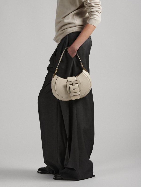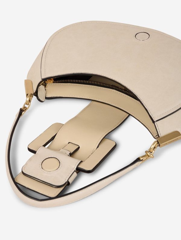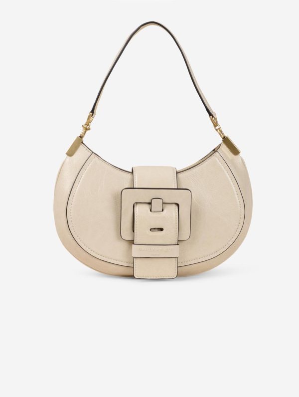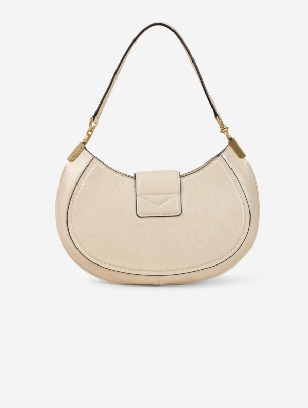 KISS ME bag in ivory naplak patent leather. Features a top zip, foldover magnetic fastening flap and the signature large leather buckle from our “ME” line of bags. Can be carried by hand or over the shoulder. Inside patch pocket. Height: 20 cm / Length: 28 cm / Depth: 8 cm.Height : 20 cm – Longueur : 28 cm – Depth : 8 cm.100% Calf leather