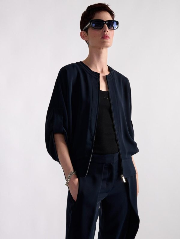 Barbara Bui Navy Zip-Up Flowing Caddy Jacket | Women’s Outerwear