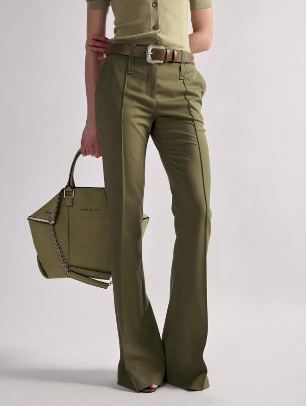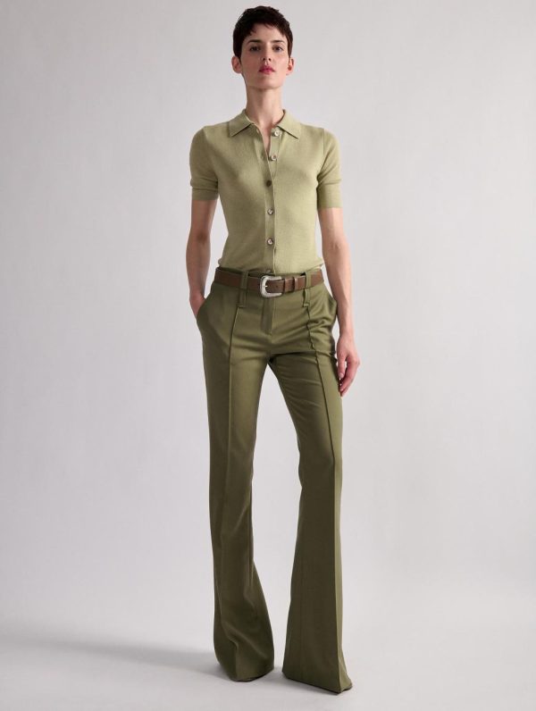 Barbara Bui Olive Green Stretch Wool Gabardine Bootleg Pants for Women