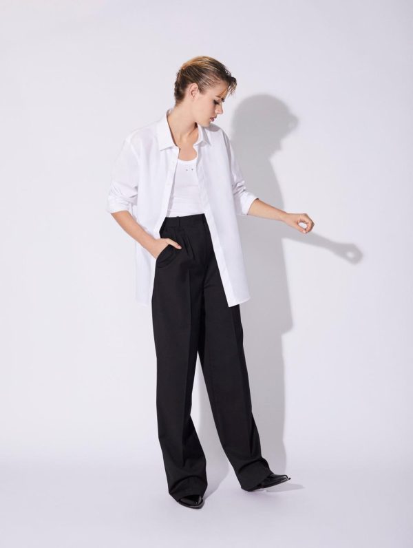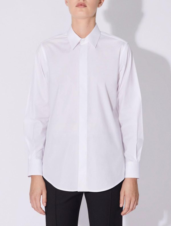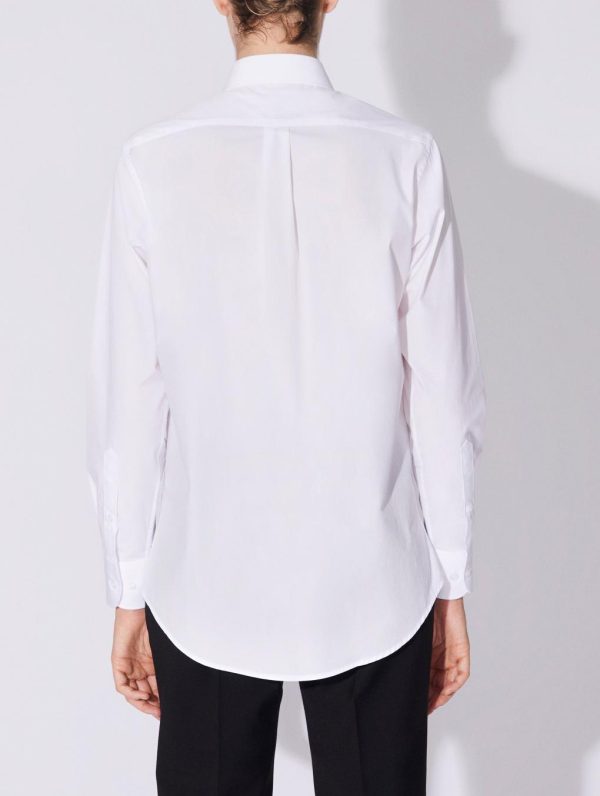 A wardrobe essential, the cotton poplin shirt is part of the Barbara Bui Suits line created to highlight our tailoring expertise. Carefully made in soft lightweight cotton poplin, this women’s shirt comes in white, black or bright fuchsia pink. It can be worn in your regular size for a classic look or, as suggested by Barbara Bui, in several sizes larger for an oversized effect. With its classic collar and cuffs, this shirt features a concealed button placket and pleat details at the back for a structured look.Model measures 180cm tall, with 90cm hips, 63cm waist and 78cm bust / Model measures 5’11” tall, with 35½” in. hips, 24,8″ in. waist and 32″ in. bust.