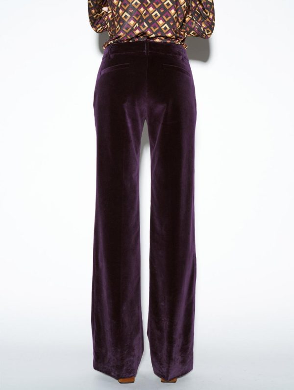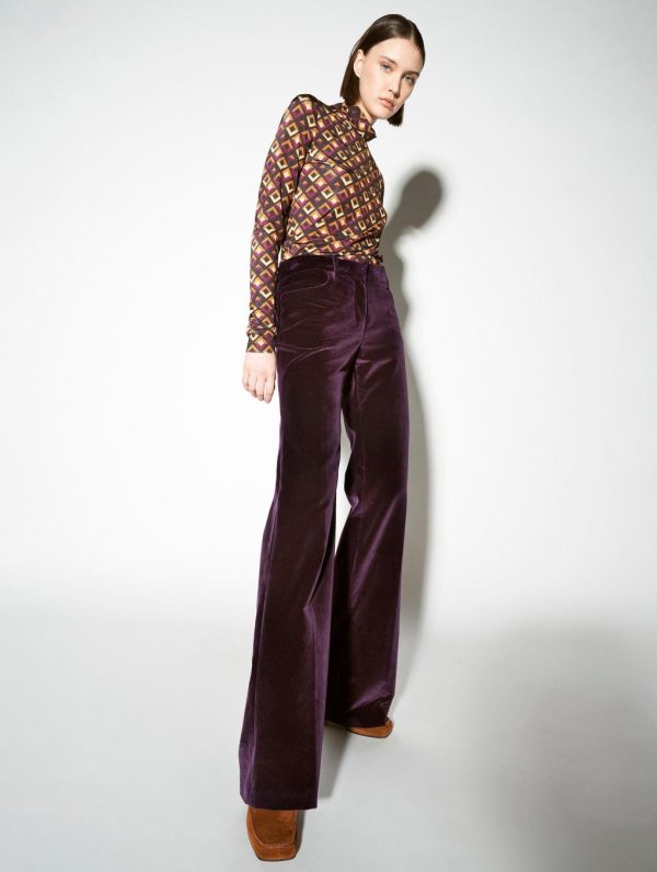 Elevate your wardrobe with our signature women’s velvet suit collection, featuring these beautifully tailored trousers with a contemporary flared silhouette that creates a stunning streamlined appearance. Perfectly paired with a silk satin blouse and matching jacket for a sophisticated monochromatic ensemble, these luxurious purple velvet trousers deliver exceptional elegance for both formal occasions and special evening events. Experience ultimate comfort with these soft, flowing flared velvet pants, designed with convenient belt loops at the waist, subtle front pockets, and refined rear welt pockets. Available in rich plum, deep night blue, or elegant olive green – which stunning hue will become your new favorite? Model measures 176cm tall, with 88cm hips, 60cm waist and 79cm bust / Model measures 5’9,2″ tall, with 34″ 1/2 in. hips, 23,6″ in. waist and 31″ in. bust.